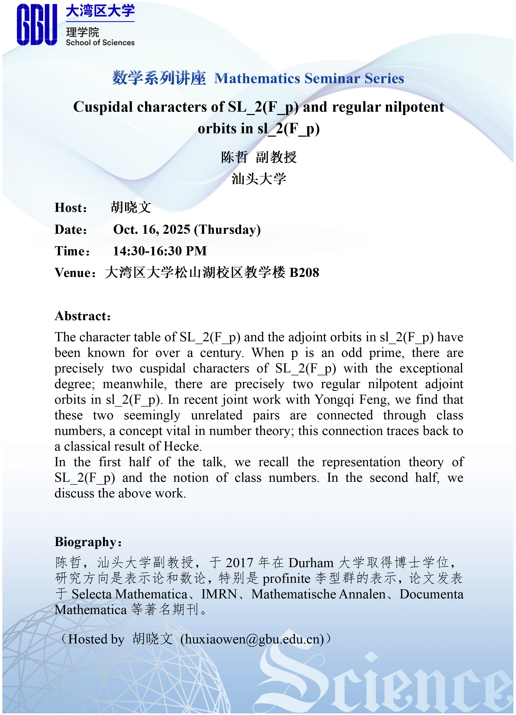 数学系列讲座-Cuspidal characters of SL_2(F_p) and regular nilpotent orbits in sl_2(F_p)