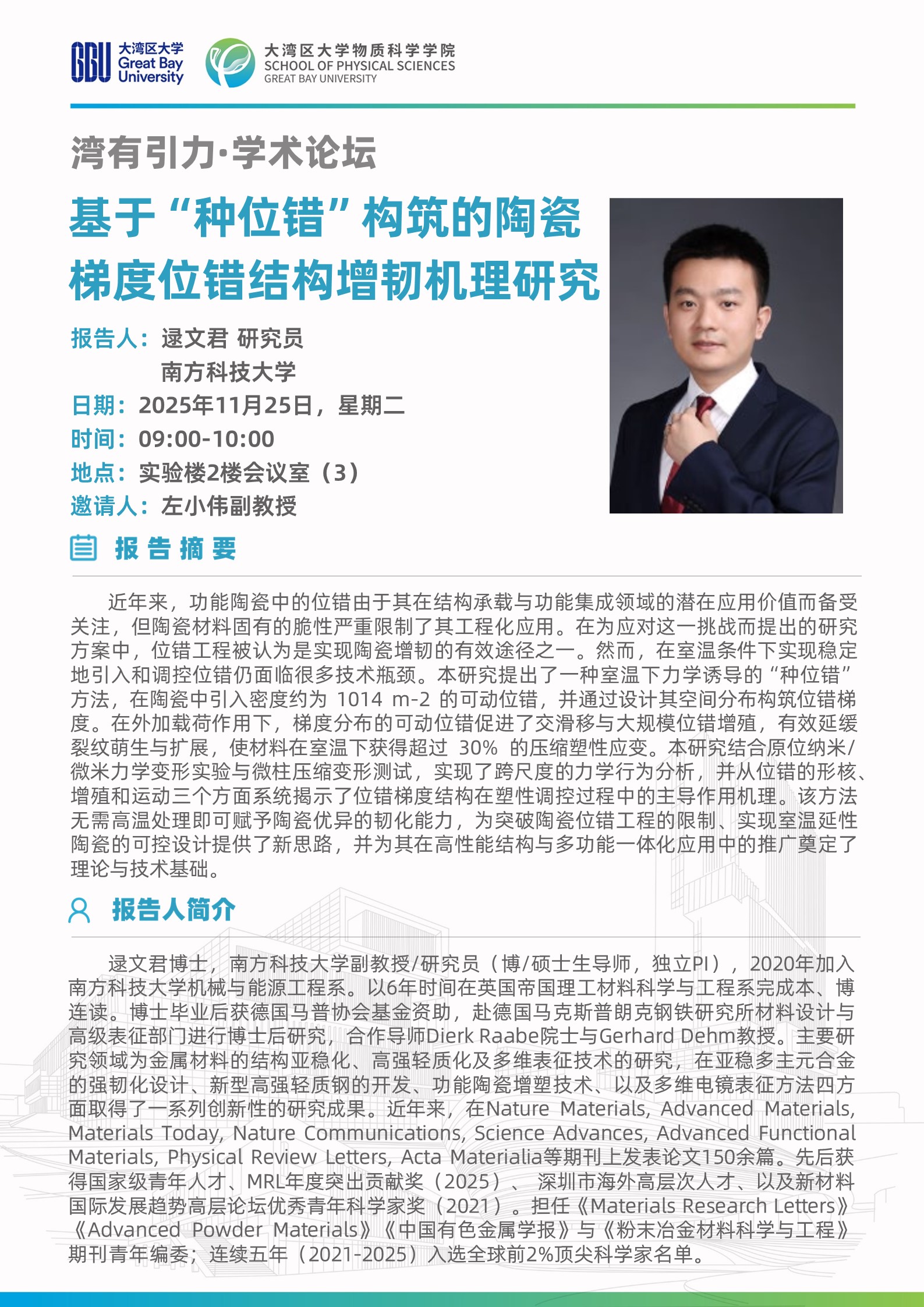 【湾有引力学术论坛】基于“种位错”构筑的陶瓷梯度位错结构增韧机理研究