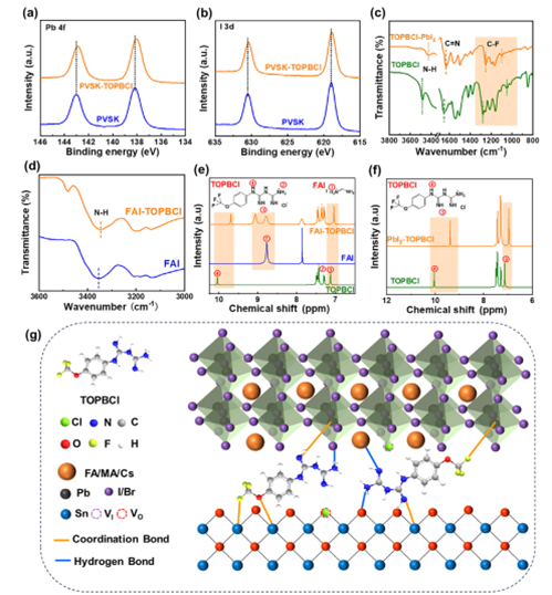 图 2. 电子传输层和钙钛矿层之间的化学桥接分析