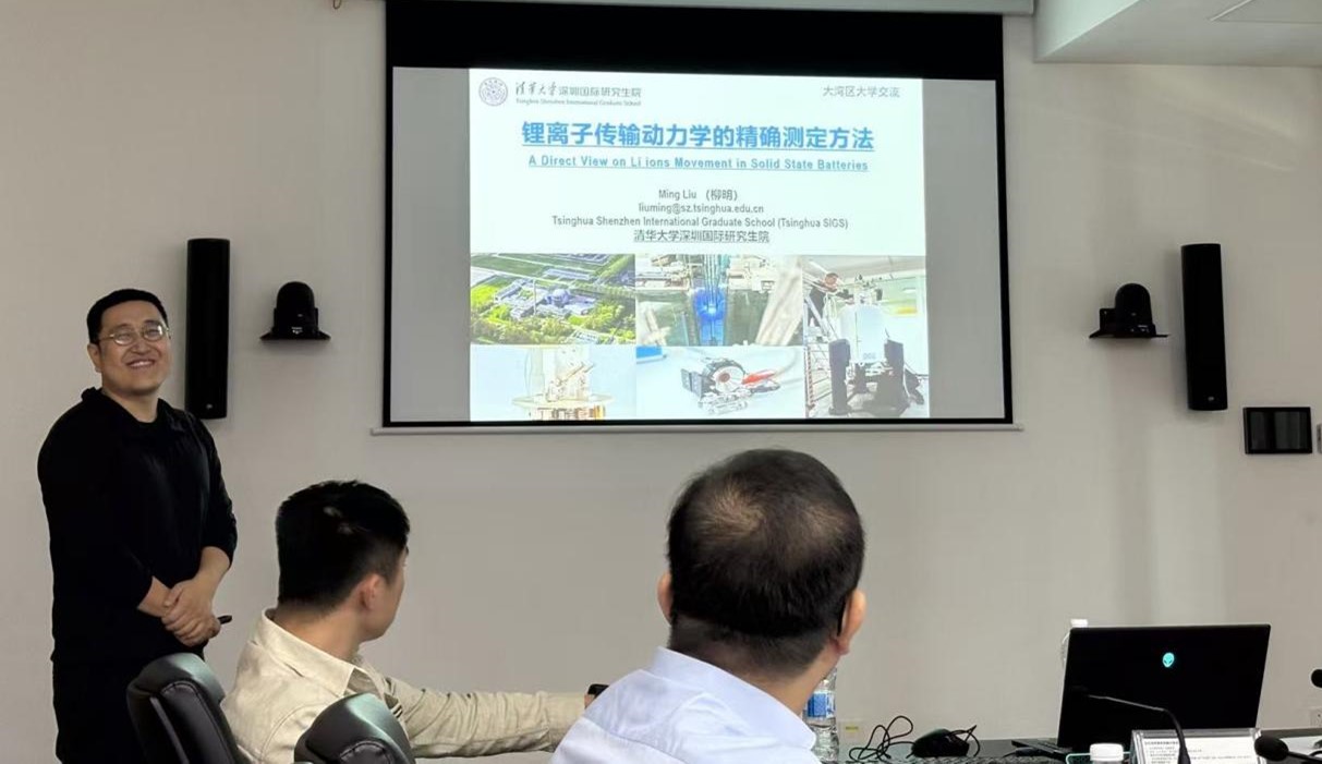 2025年12月3日上午,大湾区大学松山湖校区行政楼会议室迎来一场高水平学术报告。清华大学深圳国际研究生院柳明副教授受邀主讲,围绕固态电池离子运动表征技术展开深度分享。活动由学校钱坤助理教授主持,校内相关学科师生代表现场参与交流。