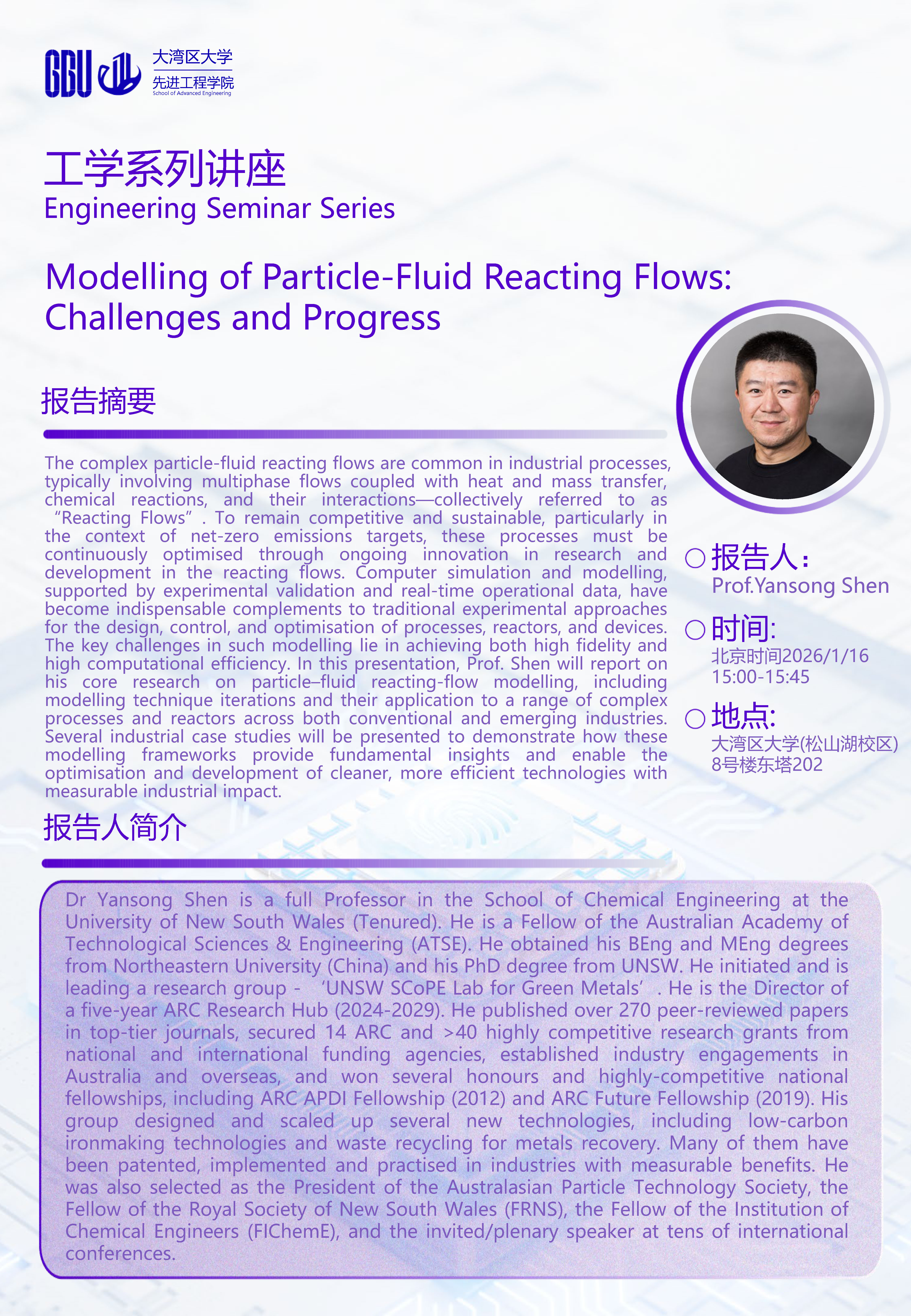 讲座预告丨Modelling of Particle-Fluid Reacting Flows: Challenges and Progress(新南威尔士大学 沈岩松教授)